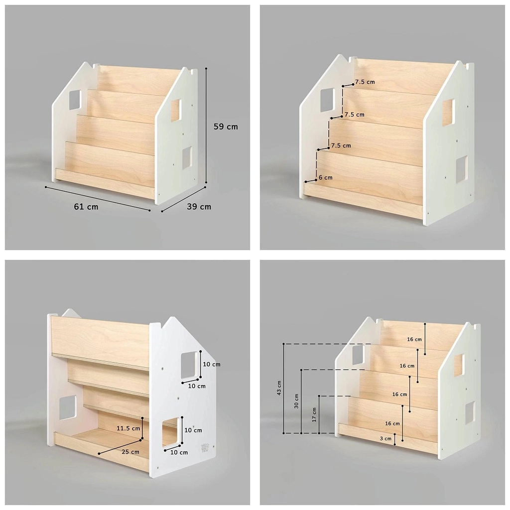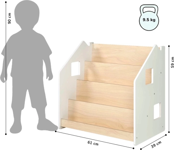 Practicul suport pentru cărți BusyKids pentru copii încurajează independența și dragostea pentru lectură. Datorită afișării cărților cu coperta în față, copiii își pot alege ușor preferatele. Oferă 4 rafturi spațioase și spațiu de depozitare posterior pentru cărți sau jucării. Construcția este robustă și sigură, cu margini rotunjite și finisaj pe bază de apă. Designul minimalist se potrivește oricărui interior.