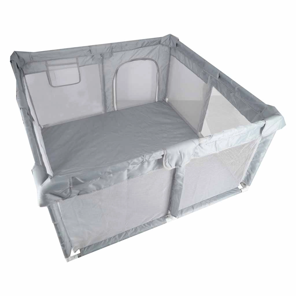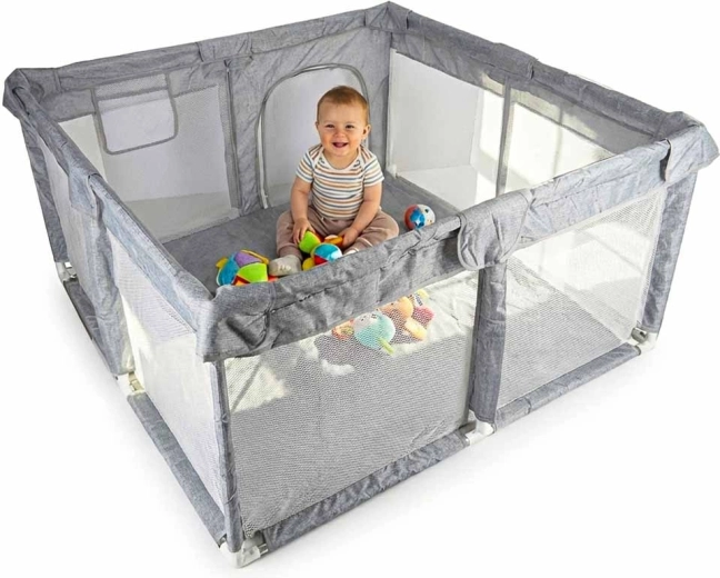 Acest țarc pliabil oferă copiilor de la 6 luni un spațiu sigur, aerisit și ușor de supravegheat pentru joacă și momente liniștite. Lateralele din plasă garantează o circulație excelentă a aerului și le permit părinților o supraveghere mai bună, în timp ce marginile superioare căptușite sporesc confortul și siguranța.