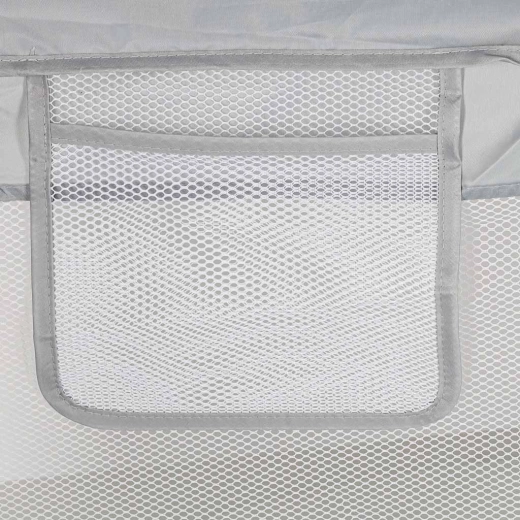 Lateralele din plasă îmbunătățesc supravegherea copilului și asigură o ventilație excelentă. Căptușeala moale a marginilor superioare sporește siguranța.