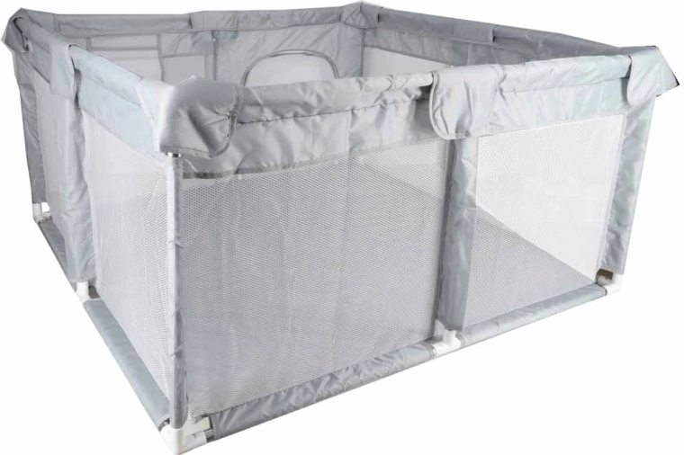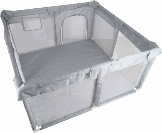 Țarcul practic pentru copii, cu dimensiunile 120 × 120 cm, creează un spațiu sigur și generos pentru joacă și odihnă. Datorită pereților din plasă îți poți vedea mereu bebelușul, intrarea cu fermoar facilitează accesul, iar montajul ușor fără șuruburi economisește timp. Stabilitatea este asigurată de conectori cu ventuze, iar marginile textile moi sporesc siguranța și confortul.