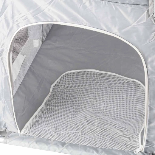Accesul cu fermoar le permite copiilor să intre și să iasă comod, iar părinților le ușurează utilizarea țarcului.