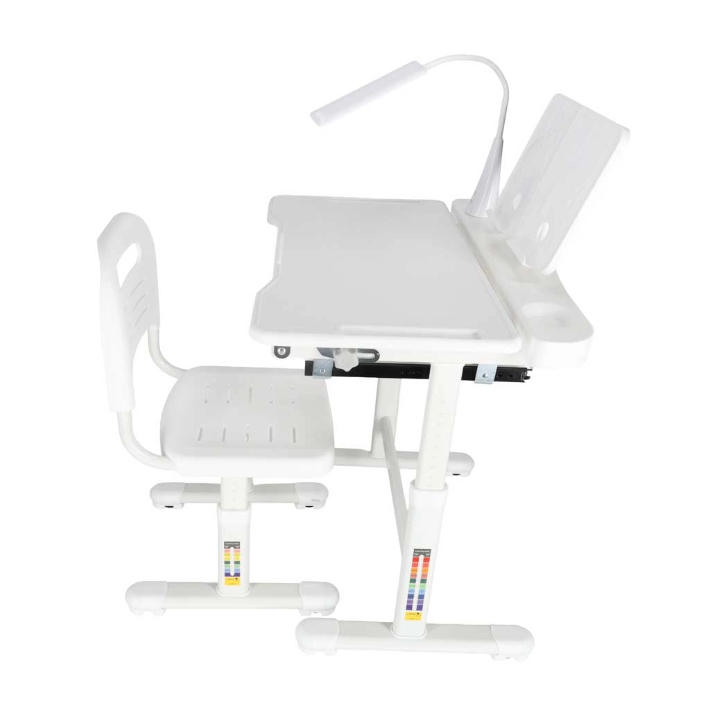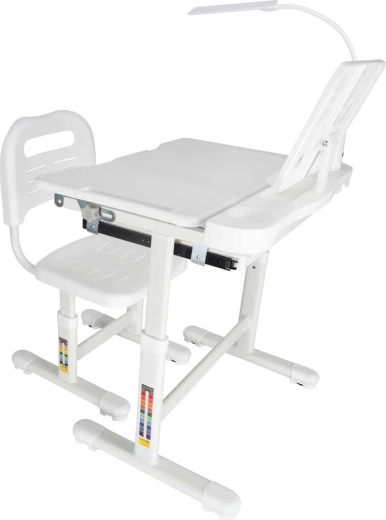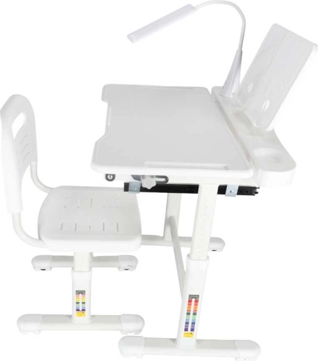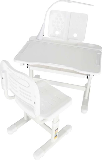 Biroul cu înălțime 53–71 cm și scaunul cu înălțimea șezutului 28–40 cm se adaptează ușor staturii copilului. Ideal pentru o ședere confortabilă și sănătoasă de la preșcolar la școlarii mai mici.