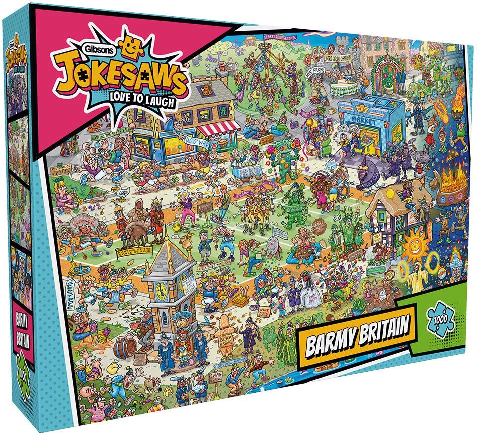 Descoperă umorul isteț și detaliile colorate ale motivului Barmy Britain în puzzle-ul perfect realizat de marca GIBSONS. Datorită celor 1000 de piese tăiate cu precizie, acest puzzle este ideal pentru avansați și începători pricepuți care caută o provocare plăcută și o execuție de calitate.