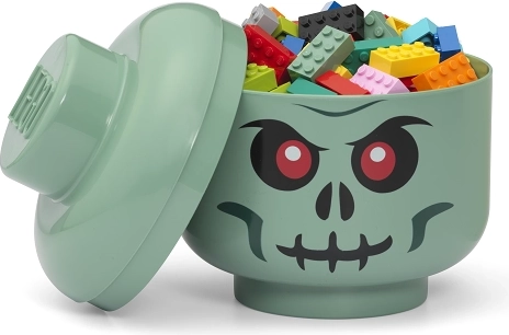 Acest cap LEGO verde pentru depozitare (mărimea S) este ideal pentru păstrarea cărămizilor LEGO, a jucăriilor mici sau a dulciurilor. Datorită imprimării expresive a feței de schelet, devine o decorațiune jucăușă pentru camera copilului și un organizator practic.