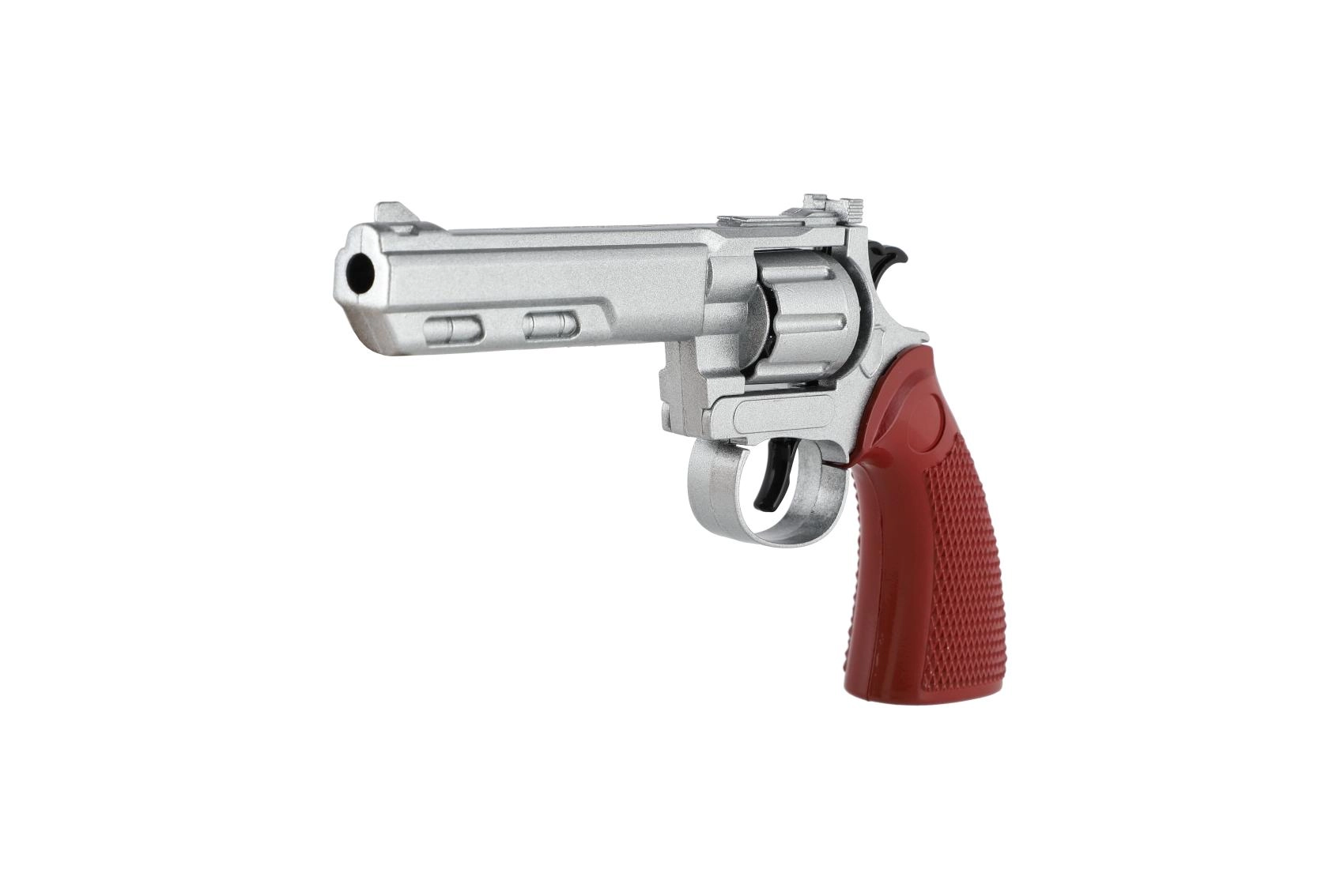 Corpul revolverului este din metal, asigurând un aspect fidel și rezistență sporită la joaca de zi cu zi.