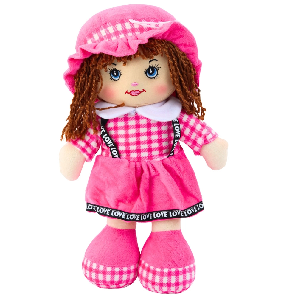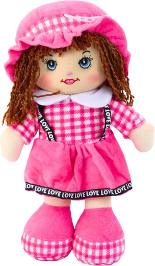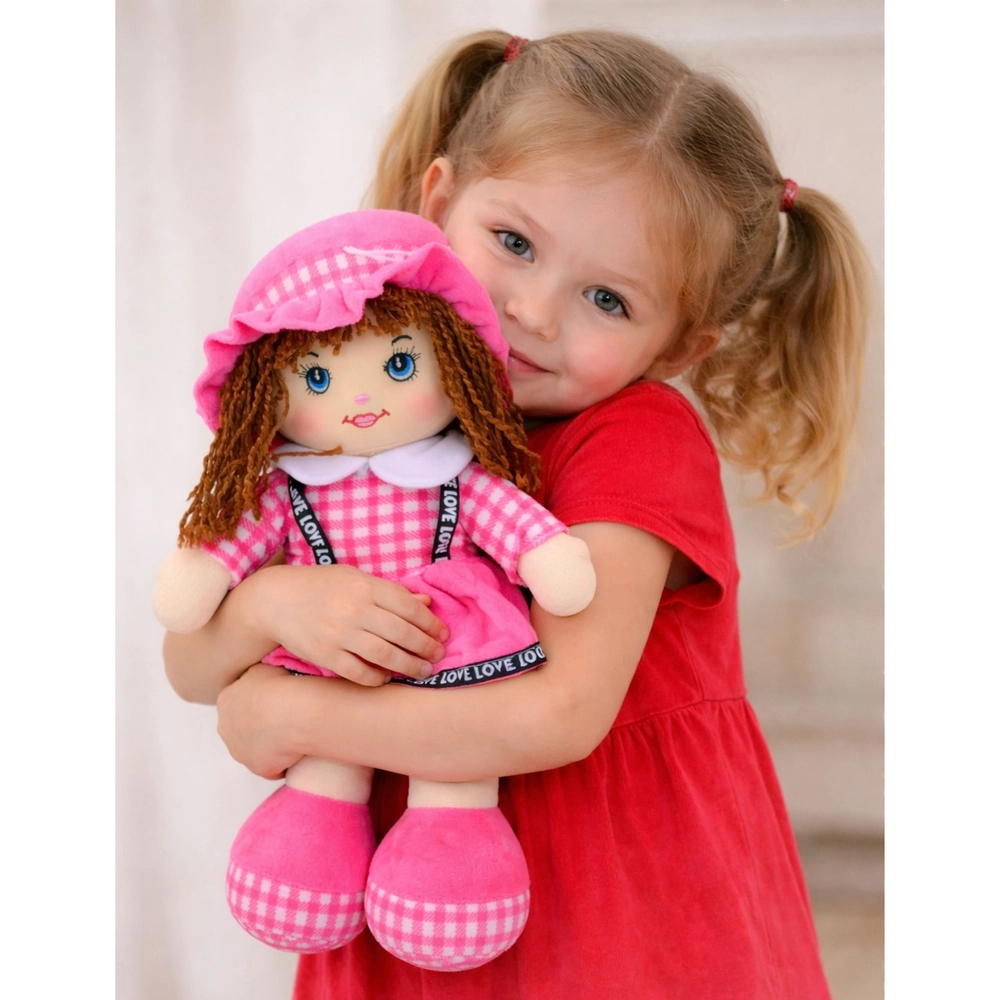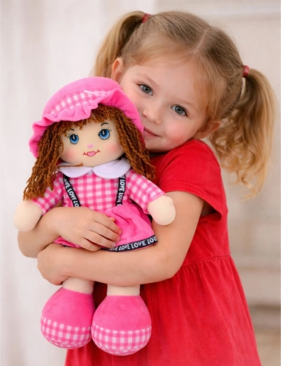 Această păpușă catifelată, în rochiță roz cu carouri, îi va încânta pe copii încă de la vârste fragede. Datorită construcției ușoare și moi, se ține ușor în mână, se poartă și se îmbrățișează cu drag, susținând sentimentul de siguranță și dezvoltarea emoțională. Părul scurt din fir, ochii și zâmbetul brodate îi oferă păpușii o expresie blândă și asigură joacă sigură, fără elemente ascuțite.