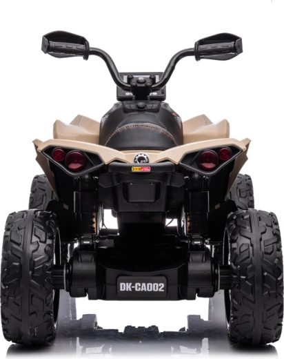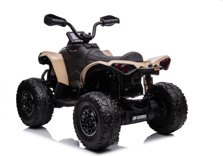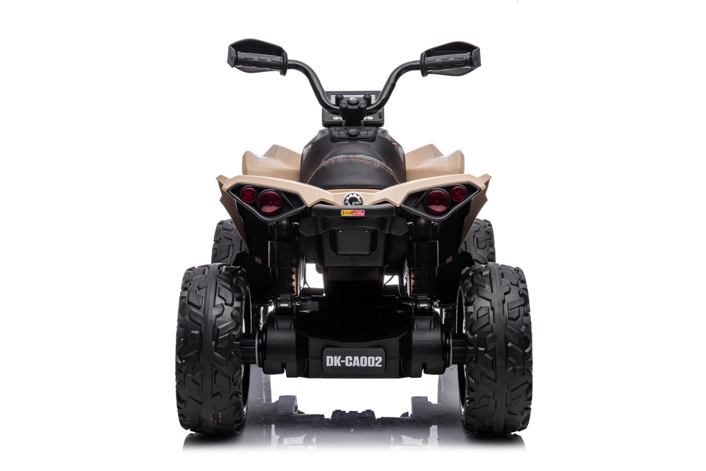 ATV electric stilat pentru copii, inspirat de CAN‑AM, în culoare kaki, oferă celor mici multă distracție atât în curte, cât și în parc. Datorită roților off‑road robuste, aspectului de tracțiune 4x4, sădiului confortabil și iluminării LED funcționale, are un aspect realist și este pregătit pentru aventuri zilnice.