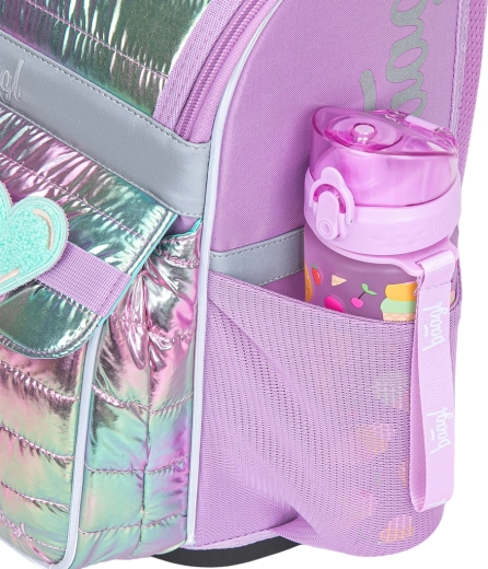 Elementele reflectorizante sporesc vizibilitatea, fermoarele YKK asigură durabilitate îndelungată, iar materialul hidrofug protejează conținutul. Insignele interschimbabile și aspectul iridescent conferă ghiozdanului un stil unic.