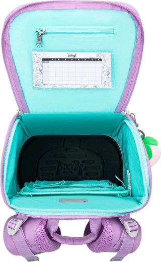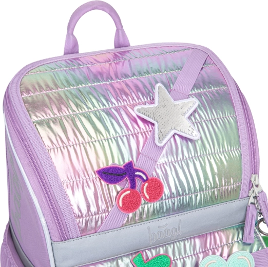 Setul școlar BAAGL Zippy Lavender îmbină funcționalitatea practică cu un design iridescent, lucios și atrăgător. Ghiozdanul ergonomic cu sistem dorsal glisant ERGO ADJUSTABLE se adaptează staturii copilului, în timp ce capacul rabatabil și organizarea bine gândită facilitează accesul la manuale și rechizite direct din bancă. Setul este completat de un penar cu două clapete și fermoar YKK rezistent, precum și de un săculeț lavabil pentru încălțăminte sau echipament sportiv.
