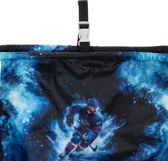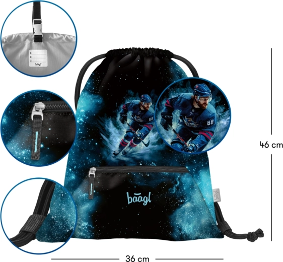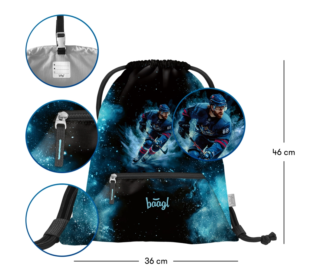 Săculețul BAAGL ușor și rezistent, cu motiv HOCHEI, este o alegere excelentă pentru școlari și copii activi. Încape în el încălțămintea de interior, echipamentul sportiv și lucrurile pentru timpul liber. Datorită buzunarului cu fermoar, vei avea mereu la îndemână mărunțișurile, bine organizate.