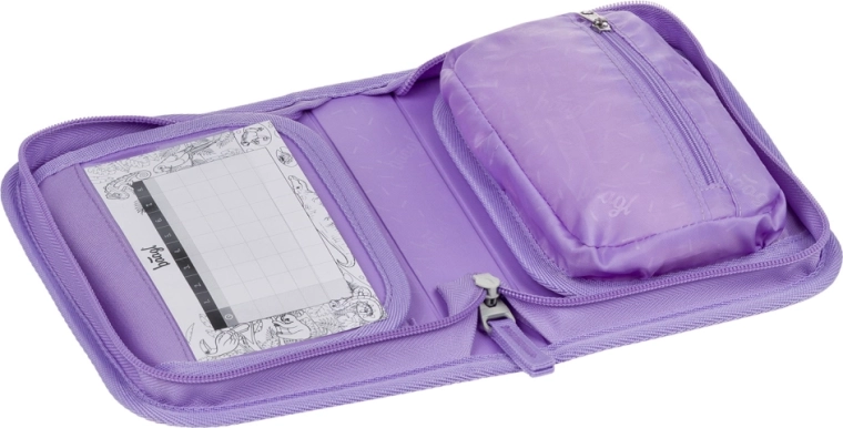 - Benzi elastice ferme pentru stilouri, creioane și creioane triunghiulare; buzunăraș pentru mărunțișuri; fereastră pentru orarul școlar