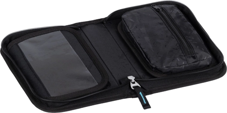 Două clapete, benzi elastice rezistente, buzunăraș pentru mărunțișuri și fereastră pentru orar păstrează totul la locul său și îmbunătățesc orientarea.