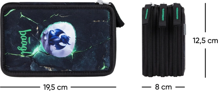 Descoperă penarul BAAGL cu trei compartimente, practic și rezistent, cu un motiv de dragon expresiv. Trei compartimente separate cu fermoar oferă depozitare clar organizată pentru tot ce are nevoie un elev – de la creioane colorate și markere până la riglă și gumă. Fermoarele de marcă YKK și construcția întărită garantează o durată de viață îndelungată chiar și la utilizare zilnică.
