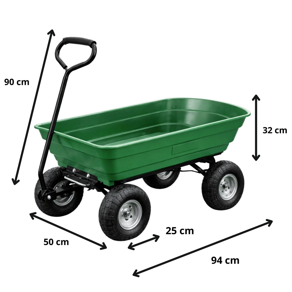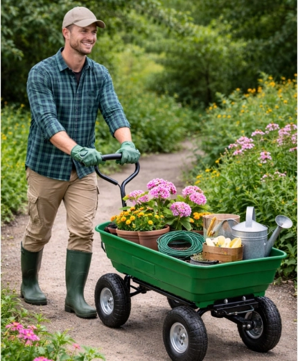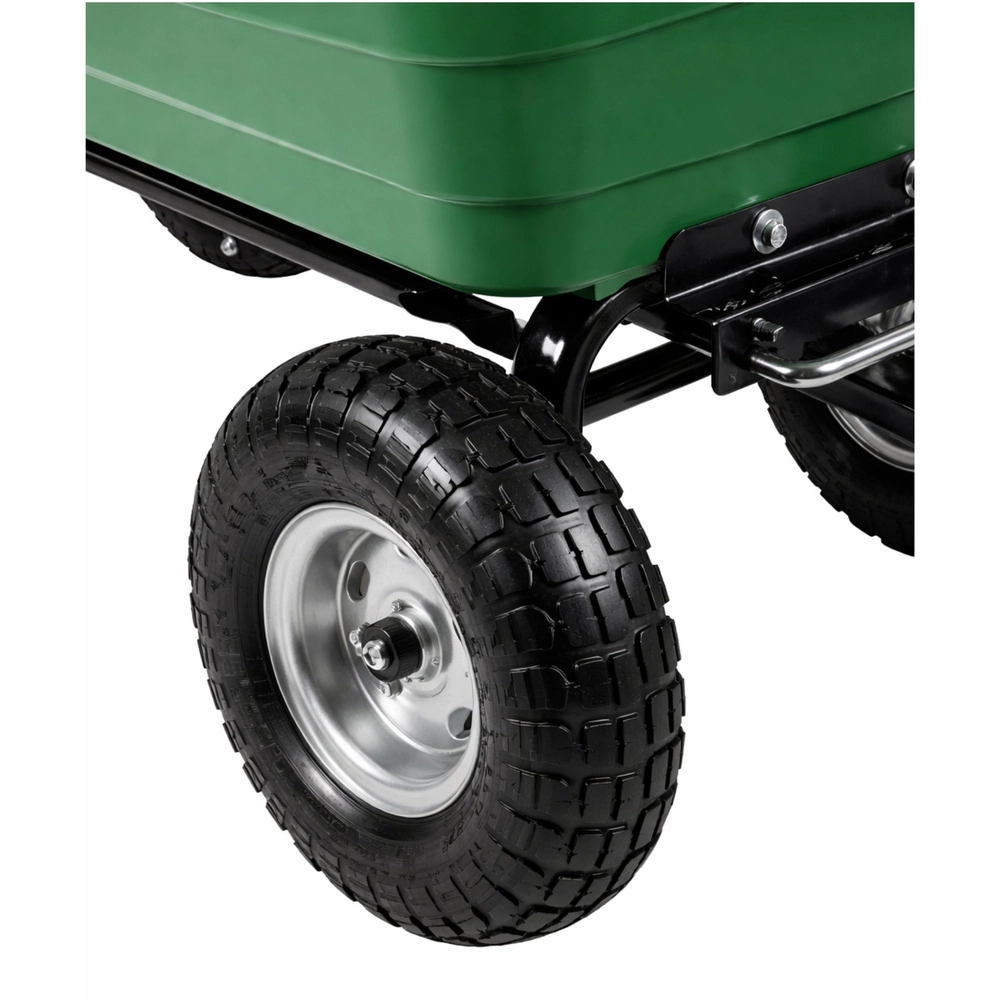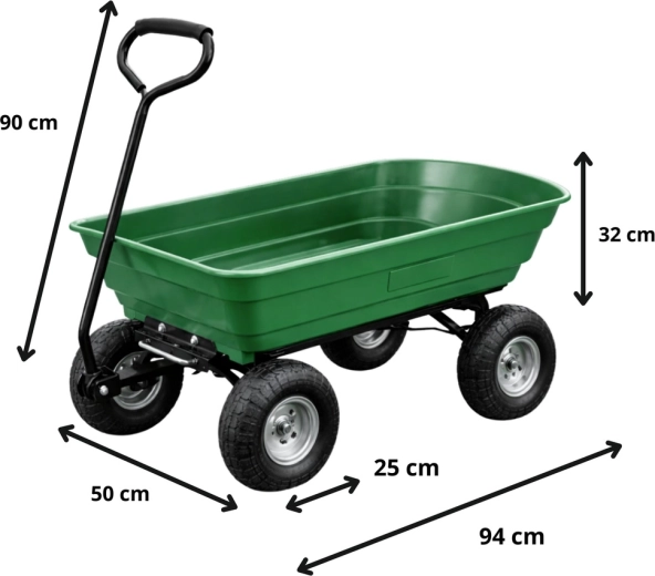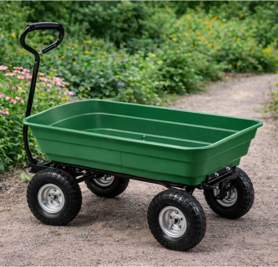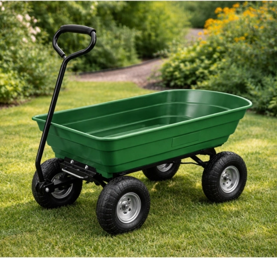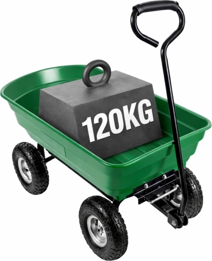Cărucior de grădină practic, cu o capacitate de încărcare de până la 120 kg, ușurează transportul solului, uneltelor, îngrășămintelor, lemnului și deșeurilor verzi. Patru roți pneumatice din cauciuc asigură stabilitate și rulare lină pe iarbă, pietriș și nisip. Bena detașabilă și rabatabilă accelerează încărcarea și descărcarea, iar ochiul de tracțiune permite conectarea la un tractor de grădină sau la mașina de tuns iarba. Un ajutor ideal pentru munca zilnică în grădină și în jurul casei.