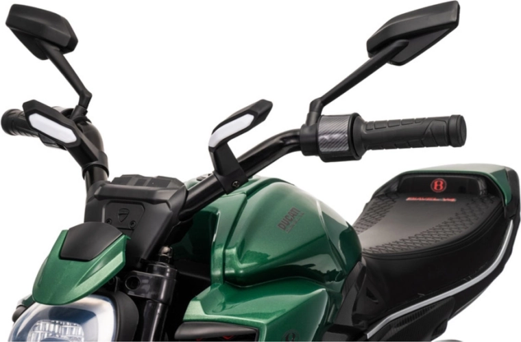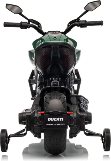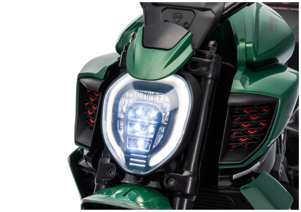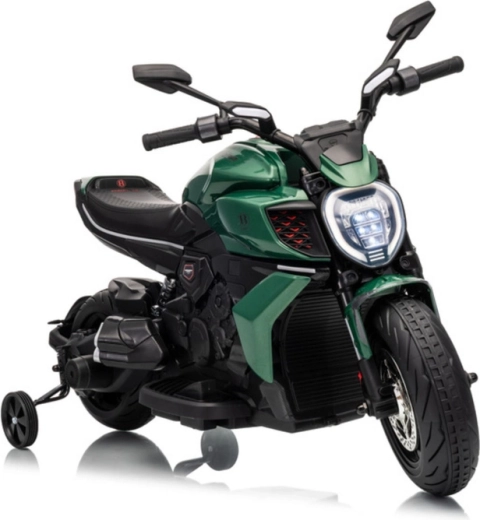 Motocicletă electrică stilată pentru copii, inspirată de modelul DUCATI DIAVEL V4, oferă celor mici distracție în siguranță și primele experiențe de condus. Datorită roților ajutătoare, mersul este stabil și potrivit chiar și pentru începători. Motocicleta oferă detalii realiste, far LED luminos și control confortabil prin ghidon. Ideală pentru jocuri în aer liber și pentru dezvoltarea echilibrului și coordonării. Roți de stabilizare, far LED, design realist și propulsie pe baterie îi vor încânta pe micii piloți și pe părinții lor.