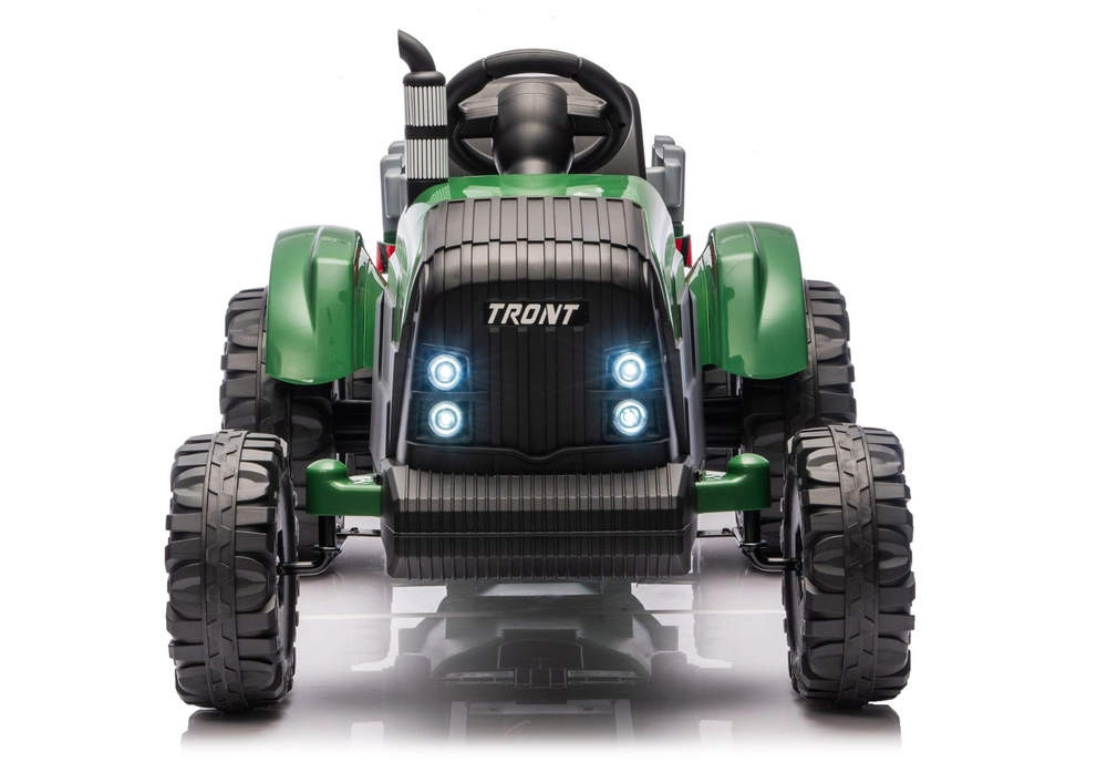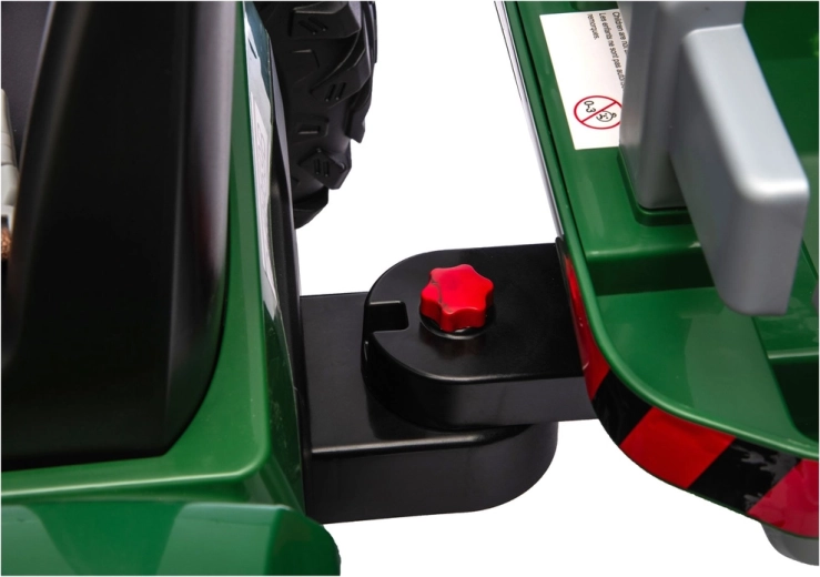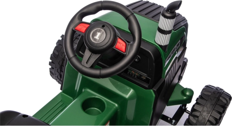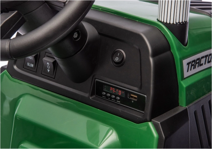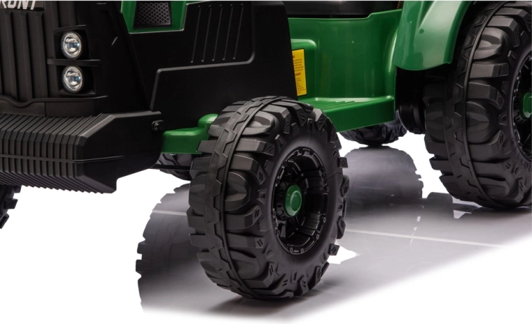 Vehiculul electric de tip tractor oferă o combinație de stabilitate, siguranță și detalii realiste – de la masca frontală pronunțată cu lumini LED până la profilul adânc al roților pentru aderență sigură pe suprafețe ferme sau ușor denivelate. Scaunul cu centură de siguranță și spătar adaugă confort chiar și în plimbările mai lungi.