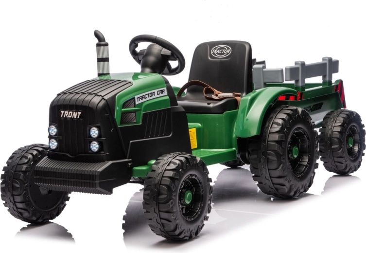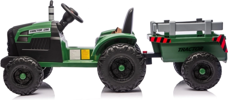 Tractor electric pentru copii cu remorcă, în culoare verde închis, oferă o experiență realistă de condus și multă distracție în grădină sau în curte. Datorită alimentării puternice 24V, roților robuste și remorcii detașabile, copiii se bucură de transportarea în siguranță a jucăriilor și de jocuri de fermă pline de aventură.