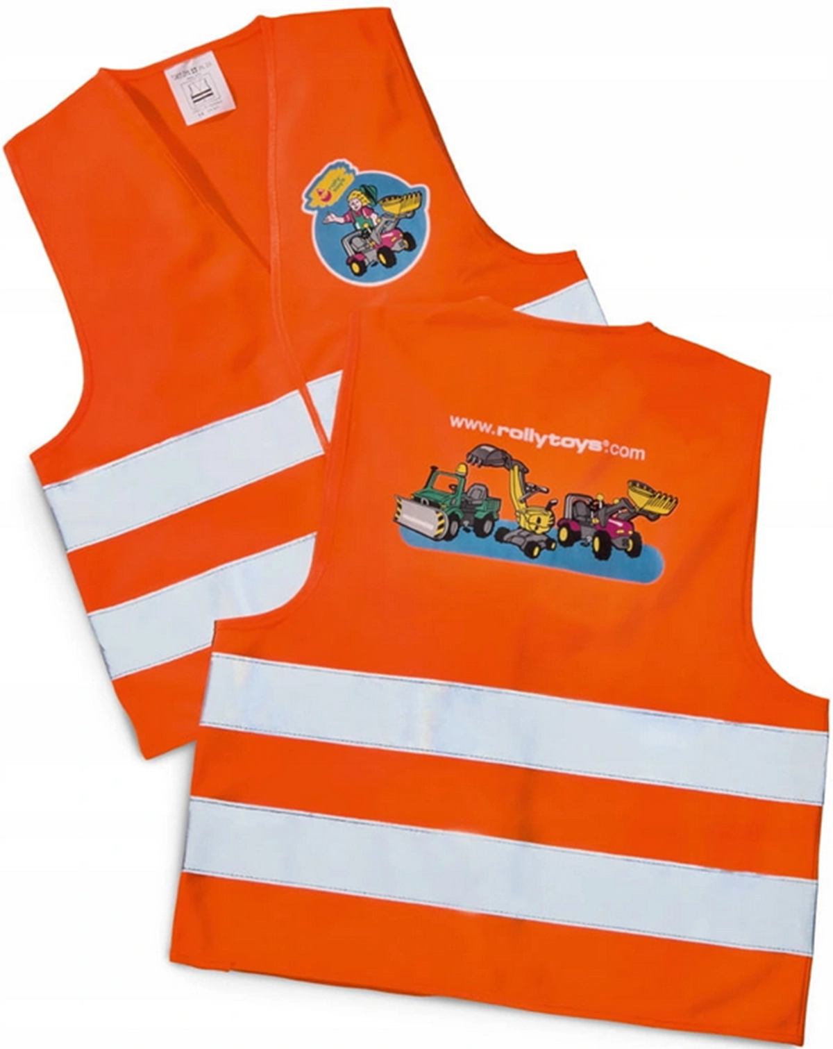 Pachetul include o vestă reflectorizantă portocalie, care crește siguranța copilului la joaca în aer liber, pe tractor sau la mersul pe bicicletă pe înserat.
