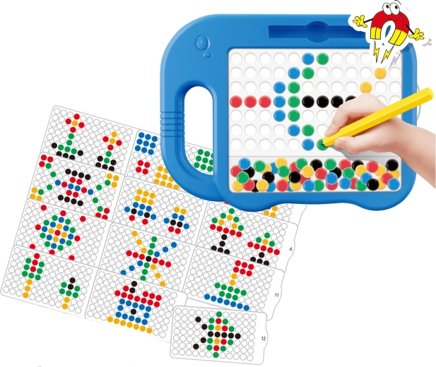 Tăblița magnetică WOOPIE MagPad este un instrument educațional excelent care transformă jocul în învățare. Copiii atrag pinii în orificii cu stiloul magnetic și creează imagini după șabloane sau din propria imaginație. Datorită construcției rezistente și utilizării ușoare, tăblița este potrivită pentru joaca zilnică acasă și în grup.