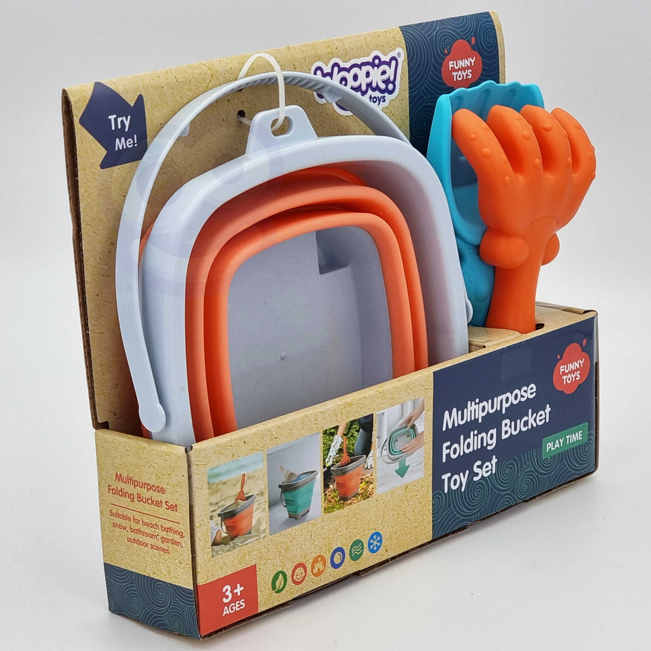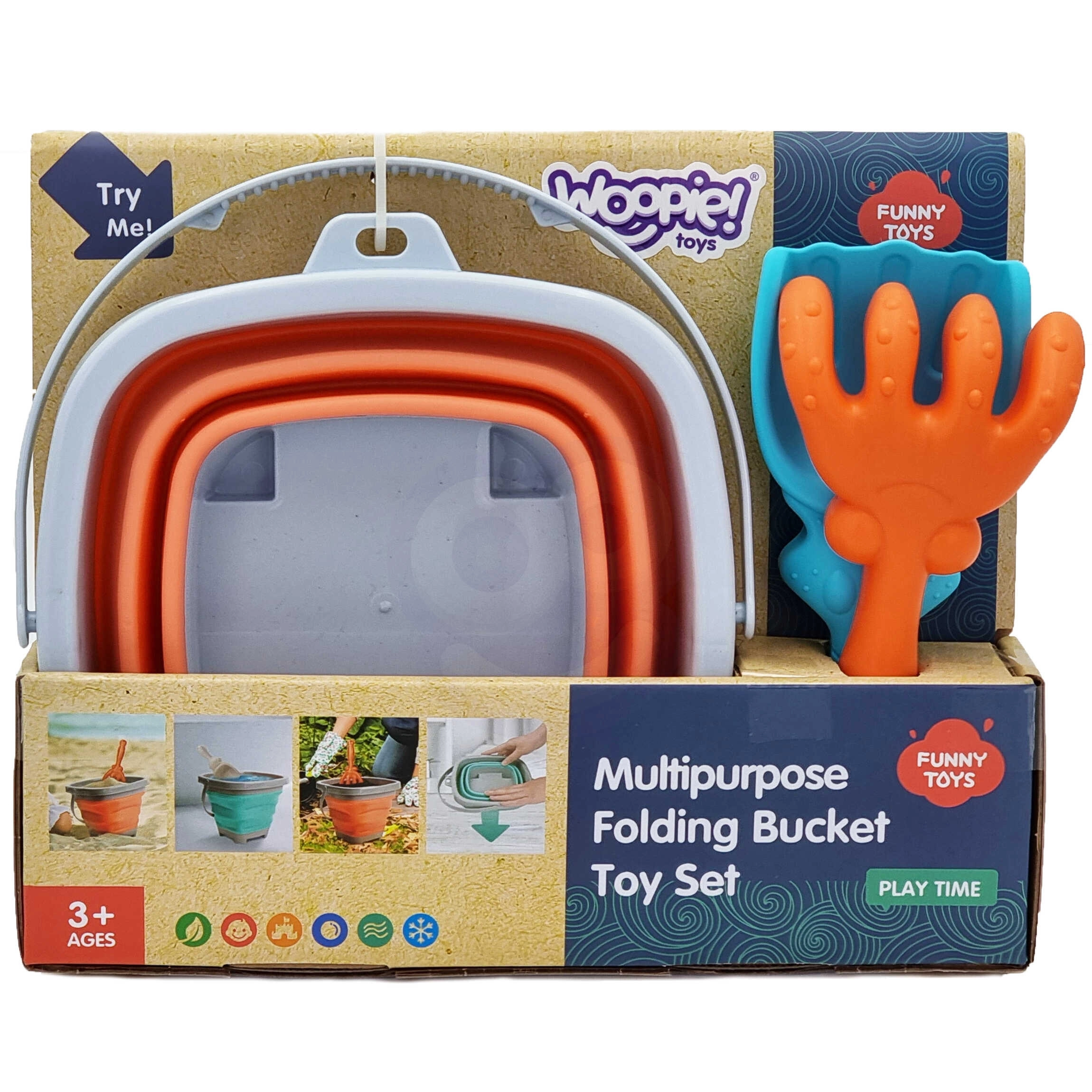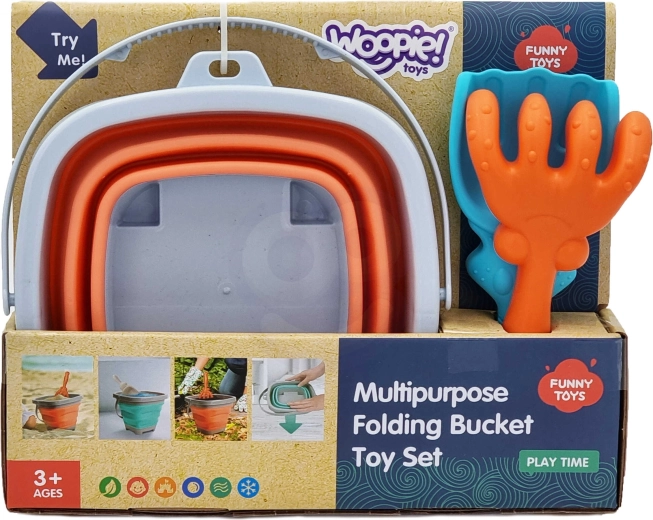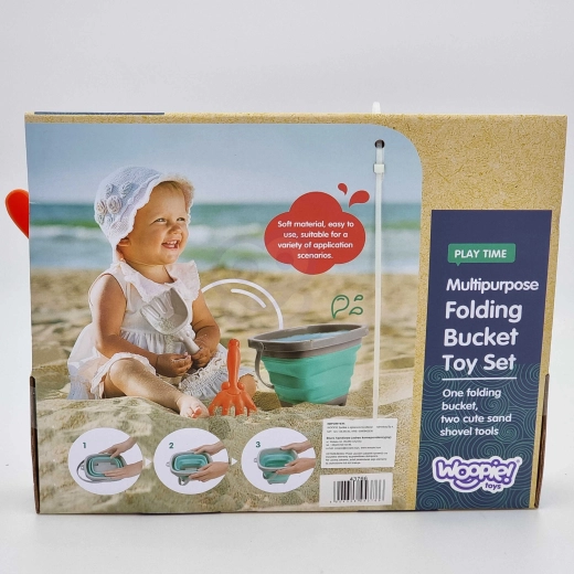Găleata pliabilă WOOPIE este concepută pentru joacă confortabilă în aer liber – în nisipar, pe plajă și în grădină. Marginea, baza și mânerul din plastic asigură stabilitatea, iar pereții groși din silicon se pliază într-o practică „armonică” pentru depozitare compactă și transport rapid.