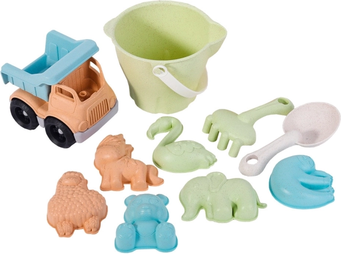 Setul ecologic pentru nisip WOOPIE GREEN oferă copiilor numeroase posibilități de a crea și a descoperi lumea de afară. Designul pastel încântă privirea, în timp ce materialele rezistente se curăță ușor și rezistă jocului zilnic. Include și un camion basculant robust pentru transportul nisipului și al comorilor.