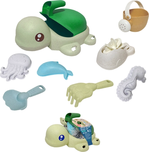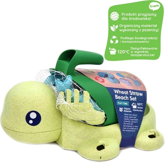 Setul Woopie Green Broască Țestoasă este ideal pentru joacă în nisipar, pe plajă, în grădină și în cadă. Datorită materialului rezistent, dar ușor, din paie de grâu, setul este plăcut la atingere, sigur pentru copii și totodată eco‑friendly. Coșulețul în formă de țestoasă și accesoriile se poartă și se depozitează ușor, susținând creativitatea și motricitatea fină.