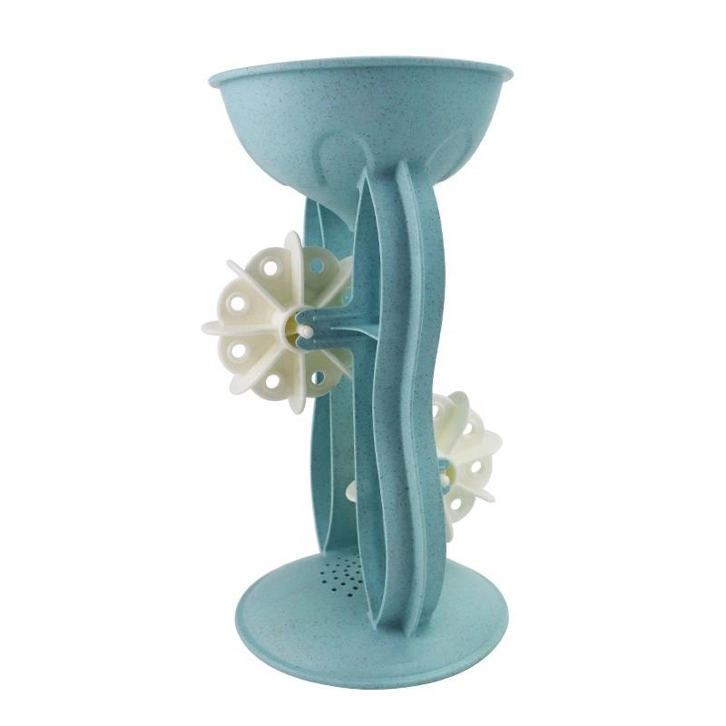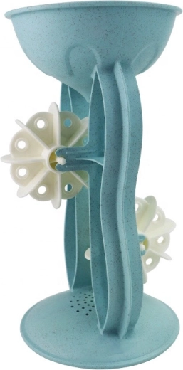 Puneți nisip sau turnați apă în pâlnie și urmăriți cum se învârt paletele. Copiii învață jucându-se noțiunile de cauză-efect și își dezvoltă motricitatea fină.