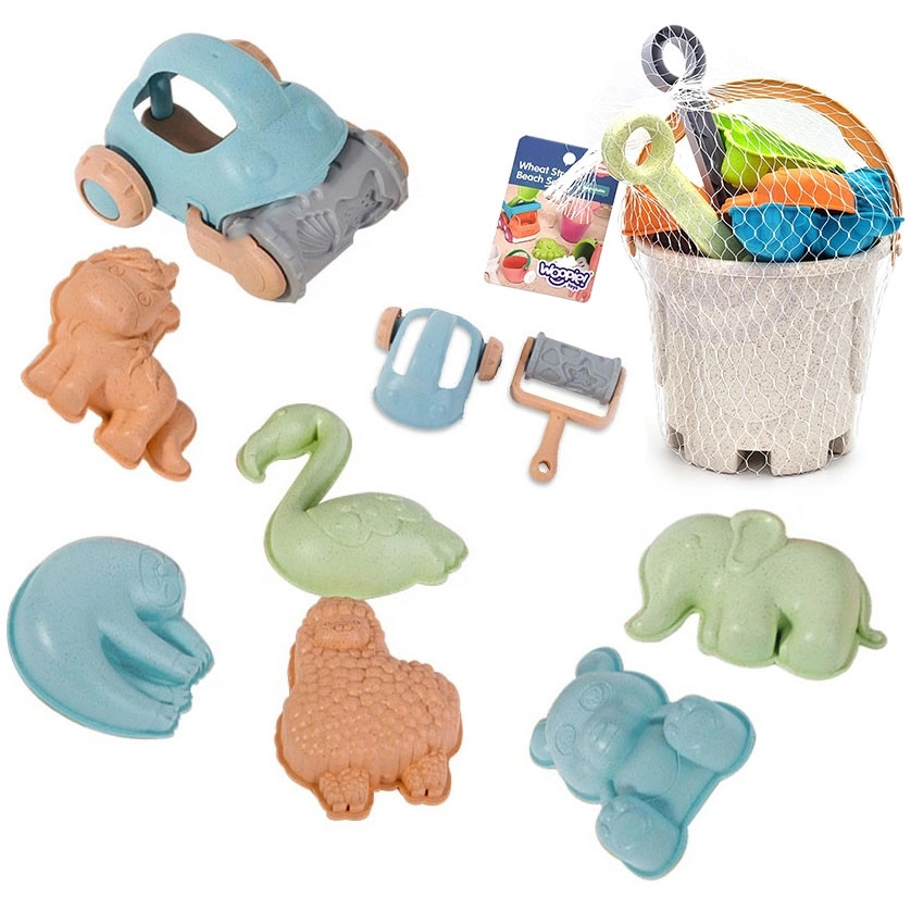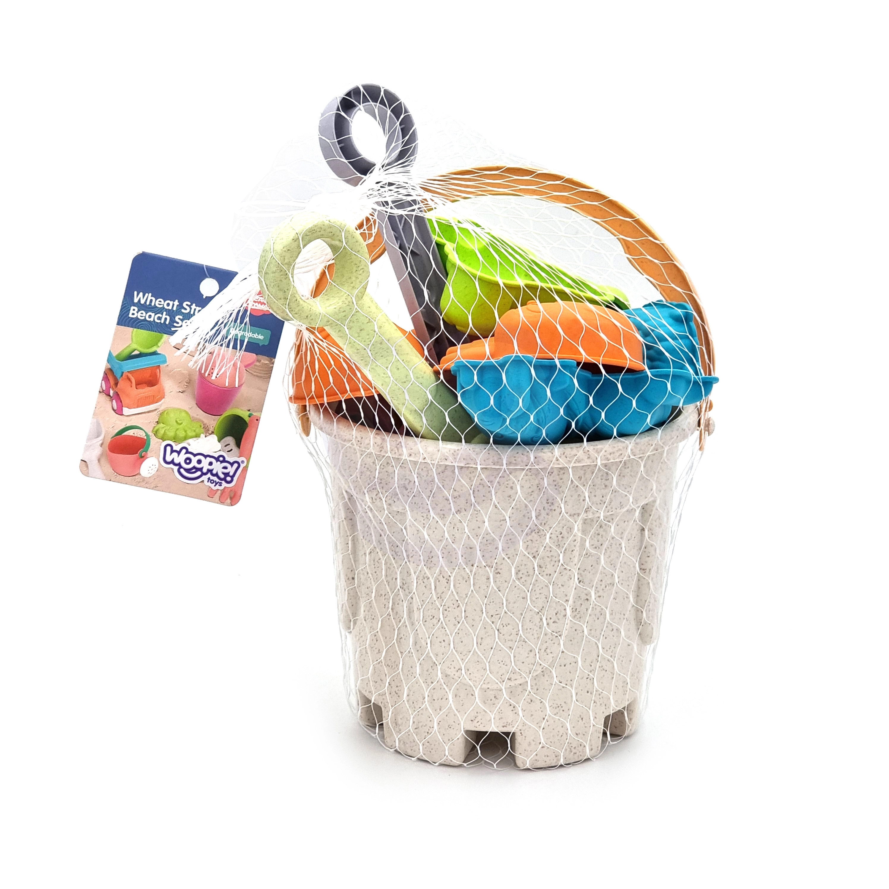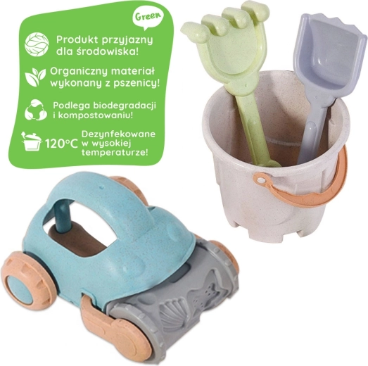 Acest set ecologic pentru nisip de la WOOPIE este realizat din material organic pe bază de fibre de grâu, biodegradabil și compostabil. Datorită execuției rezistente, formelor rotunjite și construcției ușoare, este ideal pentru mânuțele copiilor și un joc în siguranță afară.
