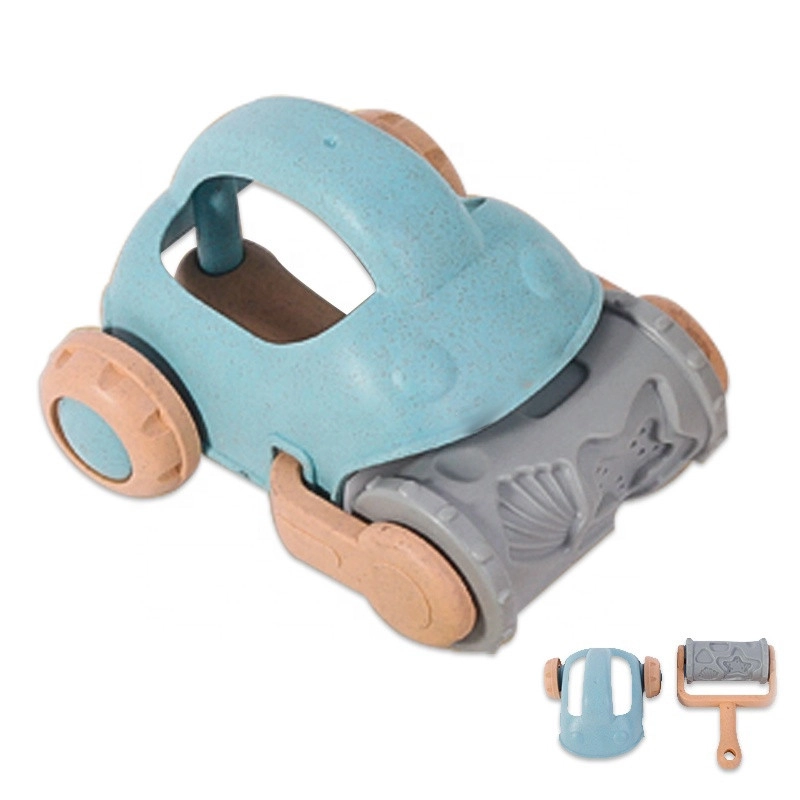 Un vehicul distractiv cu tăvălug în relief creează modele marine în nisip și stimulează imaginația și motricitatea copiilor.