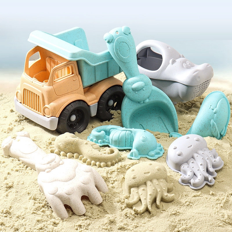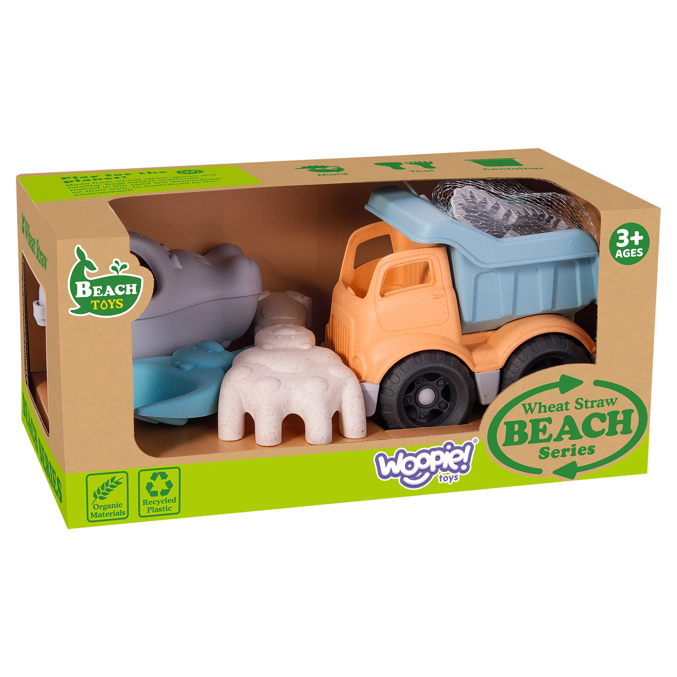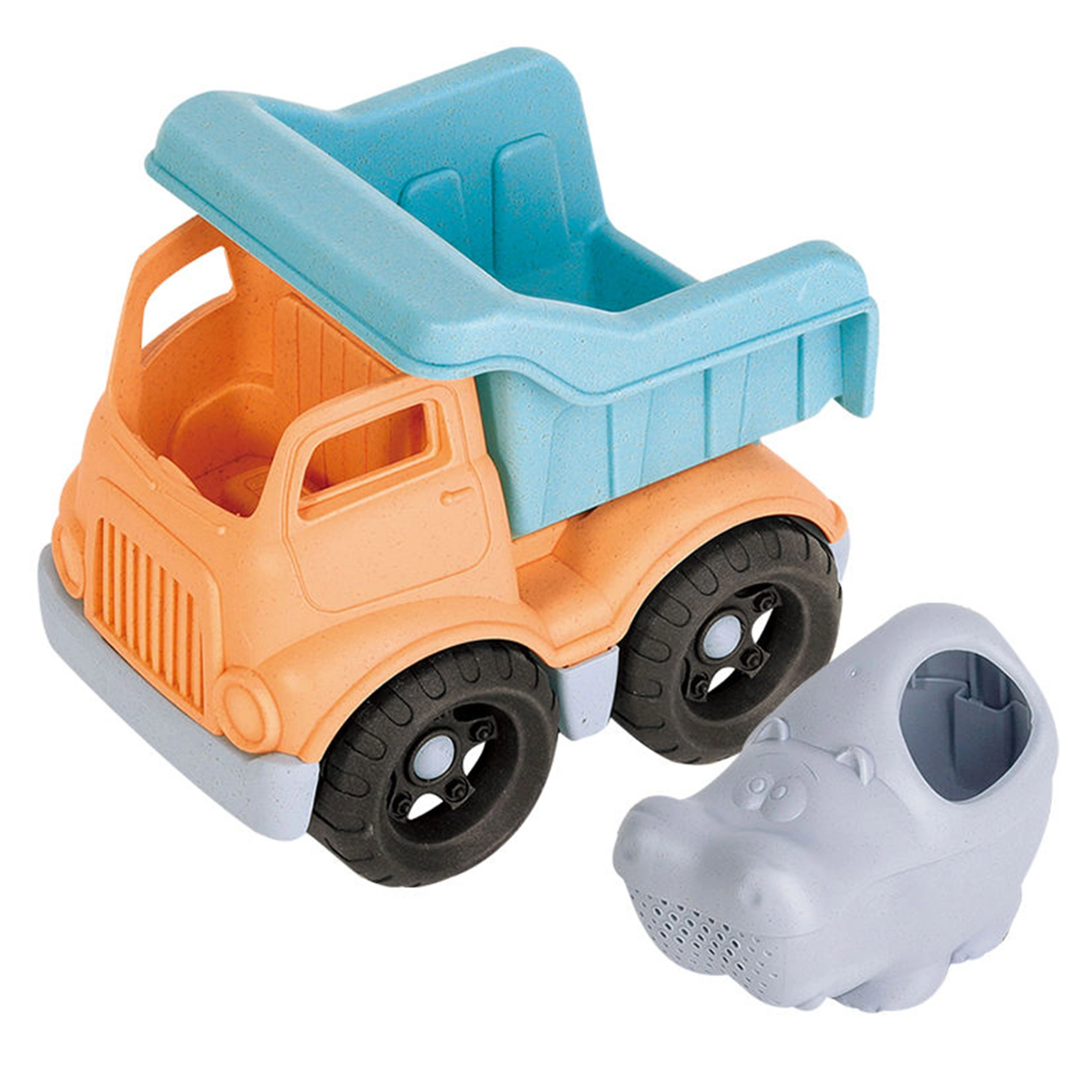 Practică autobasculantă cu benă basculantă, drăgălașa stropitoare în formă de hipopotam, lopățica, grebla și trei forme marine asigură ore întregi de distracție la construit, transportat și creat. Joaca cu setul dezvoltă motricitatea fină și grosieră, coordonarea mână–ochi, gândirea spațială și abilitățile sociale.