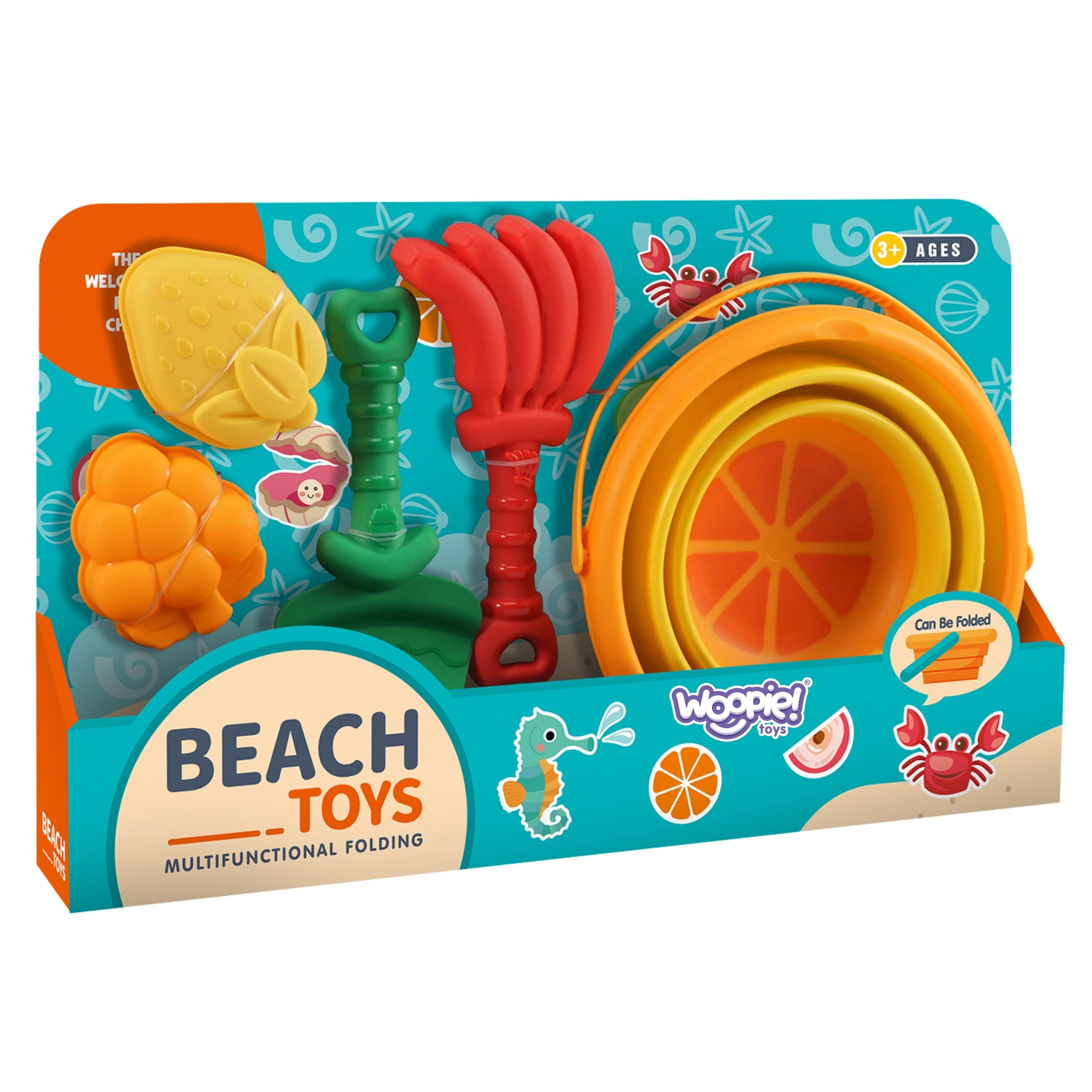 Acest set versatil pentru nisip îmbină funcționalitatea practică cu un motiv tropical jucăuș. Găleata pliabilă economisește spațiu în rucsac sau cărucior, iar uneltele ușoare sunt ușor de ținut de către copii. Datorită materialului rezistent și sigur, setul este o alegere excelentă pentru joaca zilnică pe plajă sau în nisipar.