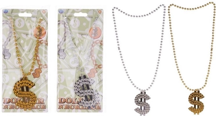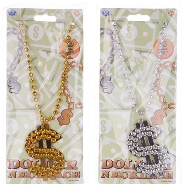 Dă viață ținutei tale cu simbolul iconic al dolarului. Acest colier vizibil este perfect pentru petreceri, carnavaluri, evenimente tematice sau ca accesoriu amuzant pentru ședințe foto. Construcția ușoară asigură purtare confortabilă fără greutate inutilă.