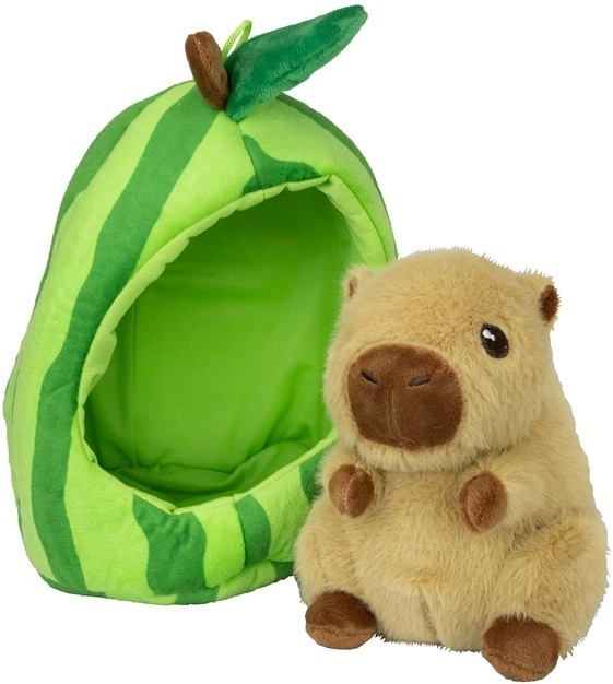 Adorabila capibară de pluș ascunsă într-o căsuță de fructe este partenerul ideal pentru îmbrățișat și joacă. Datorită materialului moale și dimensiunii compacte de 15 cm, încântă atât acasă, cât și în călătorii. La alegere, trei variante – ananas, pepene verde și piersică.