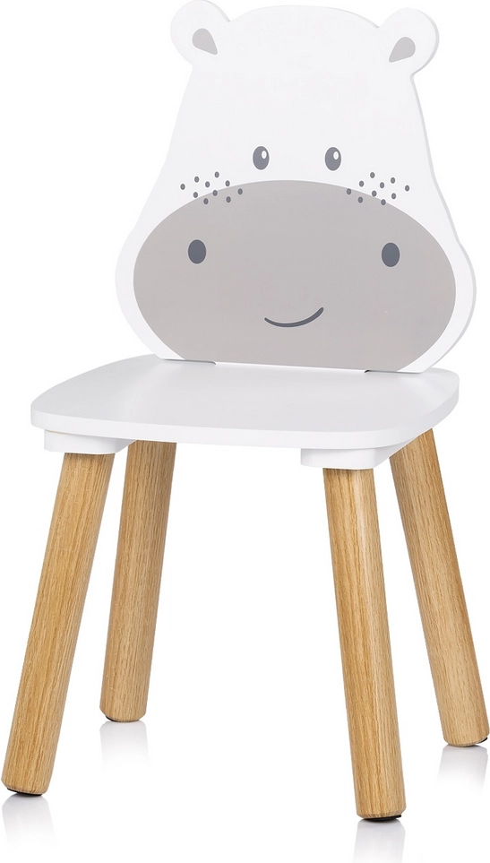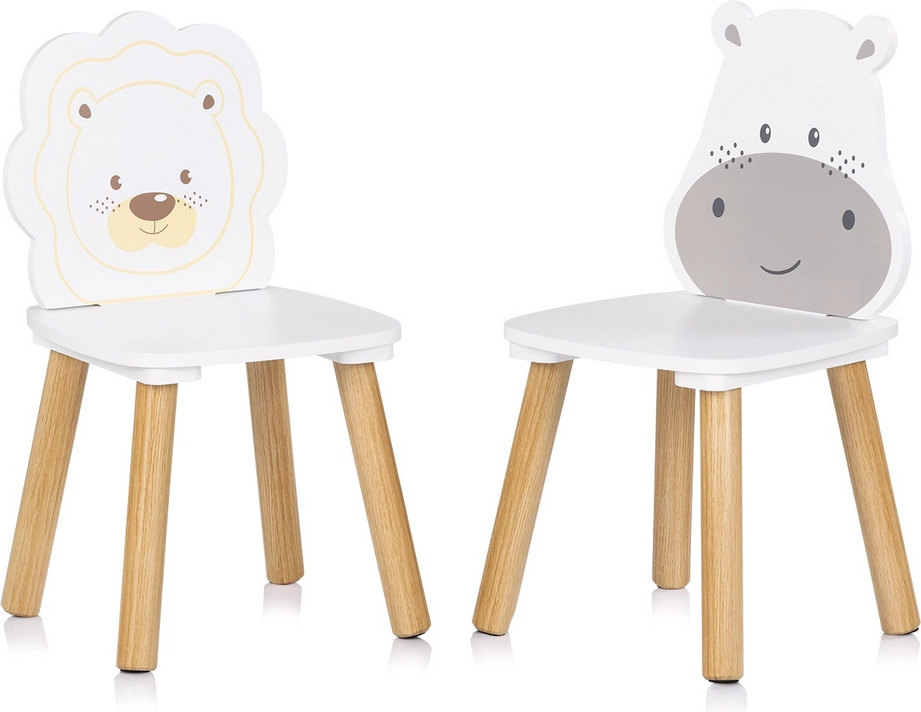 Două scaune cu spătare drăguțe cu animale – hipopotam și leu – stimulează imaginația și transformă învățarea și joaca în distracție.
