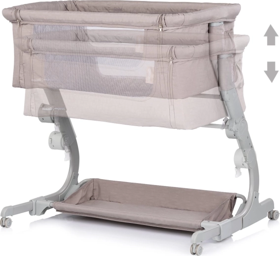 CHIPOLINO Eleganza 2în1 Tiramisu este un pat suplimentar și pătuț independent bine gândit, care ușurează îngrijirea pe timpul nopții și susține somnul bebelușului în imediata apropiere a părinților. Construcția metalică stabilă este ușoară pentru transport, oferind în același timp siguranță și stabilitate. Datorită laturilor din plasă, ai copilul mereu în câmpul vizual, iar în interior este asigurată o ventilație optimă.