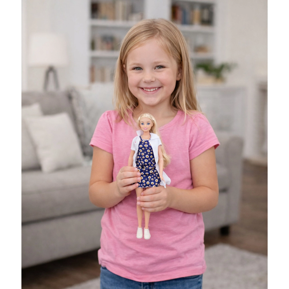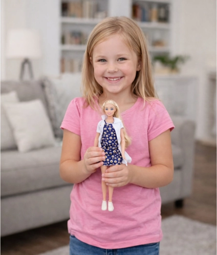 - Set complet – 18 piese, inclusiv păpușă și accesorii