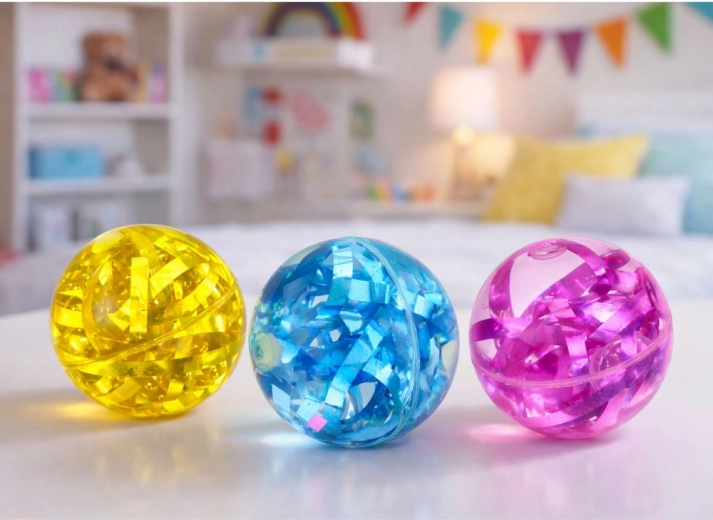 Descoperă bucuria mișcării cu mingea luminoasă plină de confetti sclipitoare. La fiecare ricoșeu, mingea se aprinde în efecte luminoase colorate, captivând atât copiii, cât și adulții – mai ales pe întuneric. Corpul transparent evidențiază confetti-le care se mișcă, adăugând jocului dinamism și atractivitate vizuală.