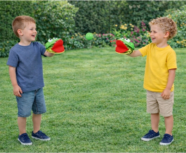 Joc distractiv cu broaște pentru copii activi, care stimulează mișcarea și cooperarea. Două „broaște” de mână cu benzi reglabile cu arici permit să prinzi și să lansezi mingiuțe, antrenând coordonarea, reacțiile rapide și precizia atât în casă, cât și afară. Ideal pentru joc în doi sau în grup.
