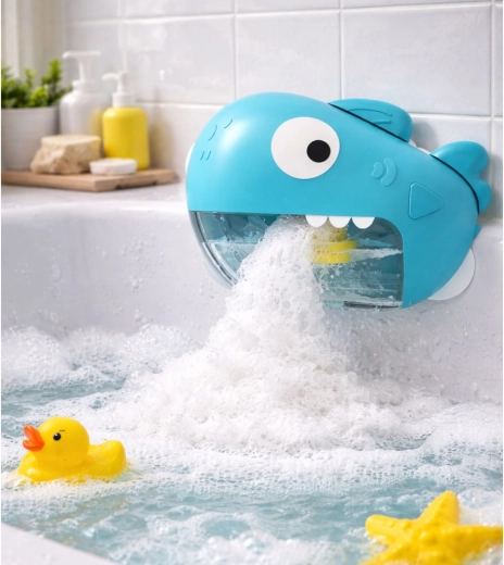Jucăria de baie interactivă în formă de rechin transformă spălatul de rutină într-un ritual plin de bucurie. Este suficient să o fixați cu ventuze pe o suprafață netedă, să umpleți rezervorul detașabil cu apă și gel de duș și, printr-o singură apăsare de buton, să porniți producerea unei spume bogate, care iese din gura rechinului și îi distrează pe copii pe tot parcursul băii.
