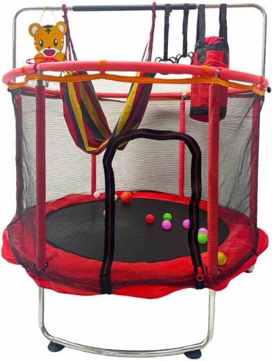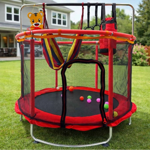 Oferă-le copiilor mișcare plină de bucurie și siguranță cu această trambulină de grădină pentru copii, 150 cm. Construcția stabilă, plasa de siguranță, accesoriile bogate inclusiv coșul de baschet, hamacul tip scaun și sacul de box transformă fiecare zi într-o distracție activă. Capacitate de încărcare până la 150 kg și detalii gândite pentru confort și joacă sigură acasă și în grădină.