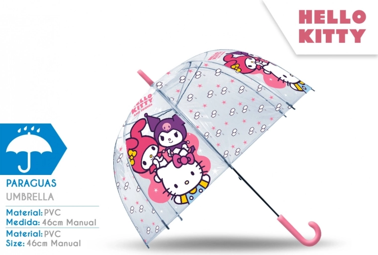 Această umbrelă pentru copii Hello Kitty este realizată din material transparent, astfel încât copilul vede bine drumul chiar și pe ploaie. Mecanismul manual simplu asigură o deschidere sigură și ușoară fără efort inutil.