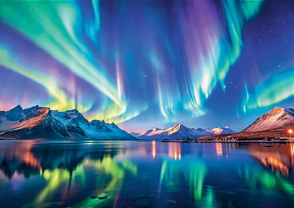Elegantul puzzle cu motivul aurorei boreale este alegerea ideală pentru iubitorii naturii, călătoriilor și cerului nocturn. Datorită tiparului de calitate și tăieturii precise, piesele se îmbină perfect, iar imaginea finală arată ca un poster decorativ. Posterul la scară inclus facilitează orientarea în zonele mai dificile și grăbește asamblarea.