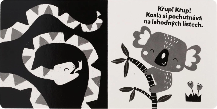 Acest leporelo cu contrast ridicat este conceput special pentru nou-născuți și sugari. Motivele alb-negru, cu forme clare și siluete simple ale animăluțelor, ajută bebelușul să focalizeze și stimulează în mod natural dezvoltarea vederii. Datorită formatului compact, cartea se ține ușor în mână și încape cu ușurință în cărucior sau în geanta de schimbat.