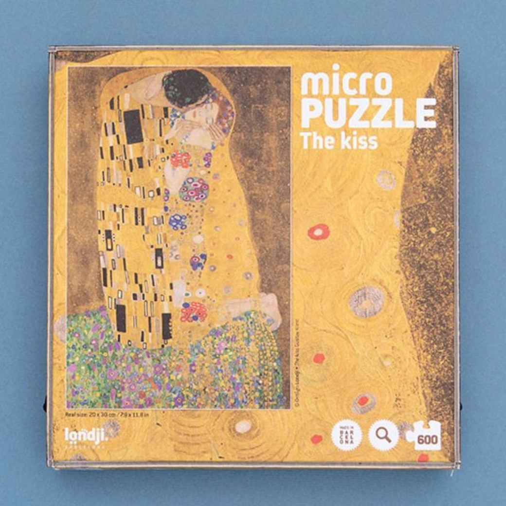 Pășește în lumea artei iconice cu micro puzzle-ul Londji inspirat de celebra lucrare Sărutul. Micropiesele aduc un nivel ridicat de detaliu și îi vor încânta pe toți cei care iubesc asamblarea minuțioasă, estetica și momentele de liniște.