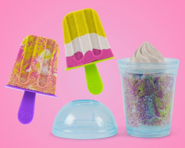 Creați smoothie-uri colorate și deserturi cu gheață din nisip cinetic folosind mixerul manual. Setul de la SPIN MASTER include 397 g de nisip în 3 culori, mixer manual, 18 forme și accesorii, pahare și forme pentru înghețată pe băț. Nisipul cinetic nu se lipește de mâini, își păstrează perfect forma și dezvoltă motricitatea fină și creativitatea copiilor de la 5 ani.