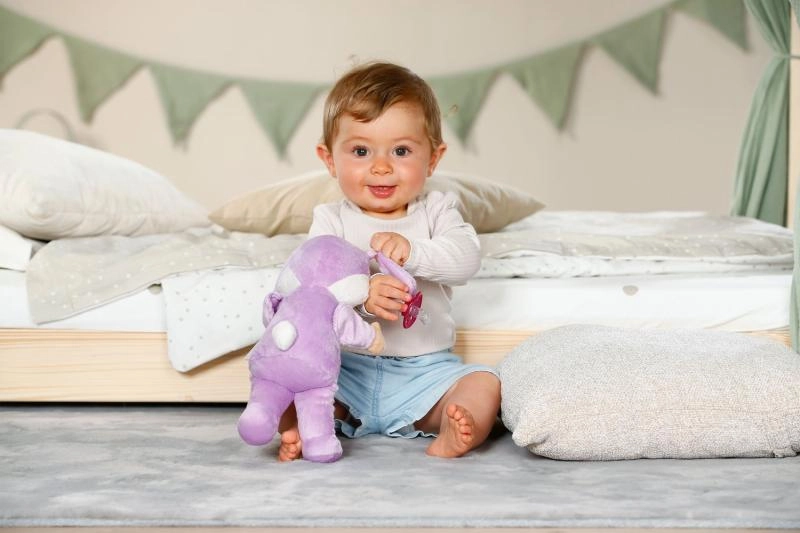 Execuția textilă moale este ușoară, sigură și ideală pentru alint și primele jocuri ale bebelușilor.