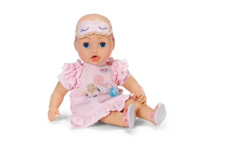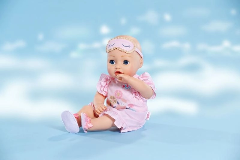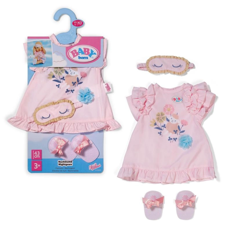 Cu acest set delicat de noapte, fiecare păpușă va fi pregătită pentru un somn liniștit. Țesătura moale, detaliile cu volănașe și accesoriile asortate stimulează imaginația și jocul de îngrijire. Datorită măștii de somn și papuceilor, ia naștere o ținută completă de seară, confortabilă și frumoasă.