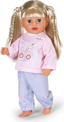 Oferă păpușii tale confort și stil cu acest trening pastel pentru mărimea 36 cm. Tricoul roz asigură libertate de mișcare, iar pantalonii mov cu croială lejeră sunt perfecți pentru ore întregi de joacă și jocuri de rol.