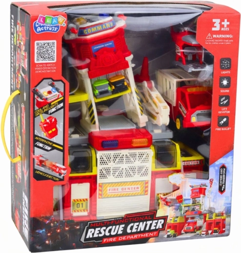 Descoperă jocul plin de acțiune cu baza multifuncțională a pompierilor, care se desfășoară într-un centru de comandă pe mai multe niveluri. Copiii vor fi încântați de efectele de lumină și sunet, catapultarea vehiculelor, rampele de coborâre și pistele de curse rapide și de simularea pulverizării apei. Intercomul susține jocul de rol ca șef de intervenție și scenarii realiste, care dezvoltă imaginația, motricitatea și gândirea logică.
