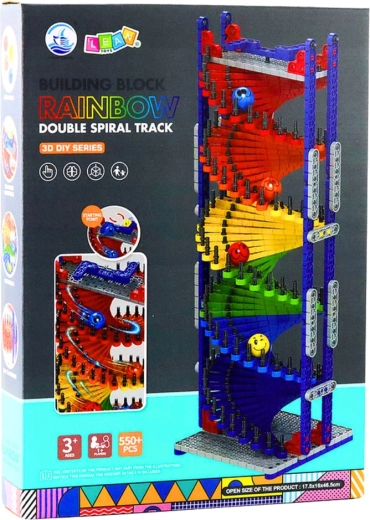 Descoperă setul creativ de construcție cu turn și tobogan pentru bile, cu 550 de piese, care îmbină distracția, învățarea și motricitatea fină. Datorită construcției în formă de dublă helix, oferă pistă dublă pentru bile, perfecte pentru curse și observarea mișcării și gravitației. Îmbinări prin clipsare rezistente, piese din plastic sigure fără muchii ascuțite și culori și forme variate care dezvoltă creativitatea și reprezentarea spațială.